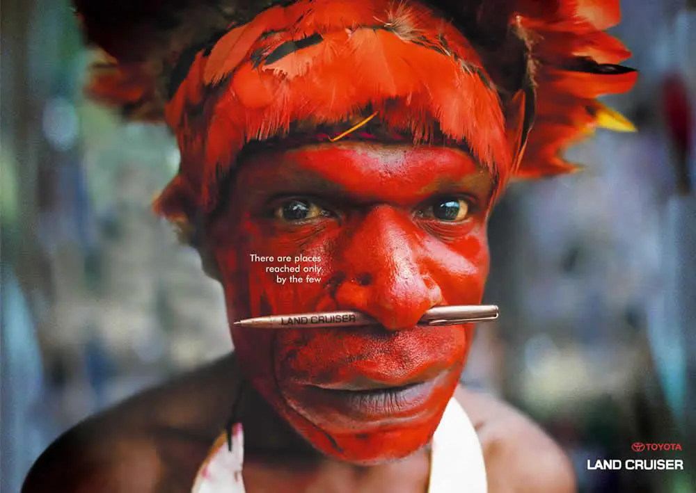 This colourful car advertising is without a doubt strong and beautiful in the same time. The use of the pencil as a tribal jewelry is clever. So fashionable!