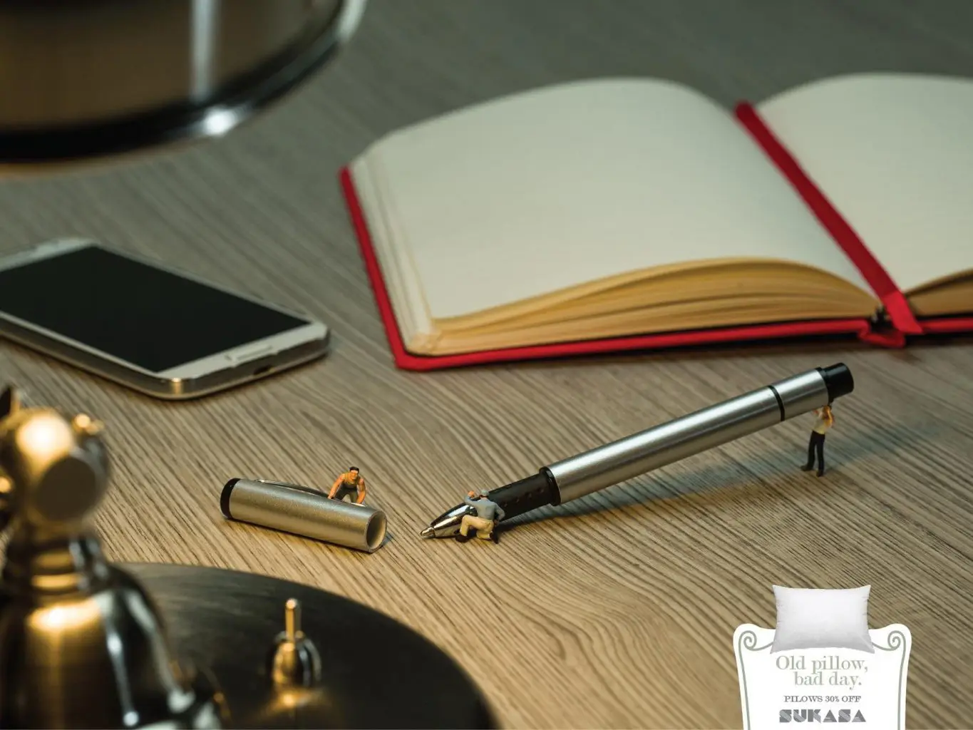 Looks like this pen is heavy! Really smart and funny way to present the pillow product in this office scene.